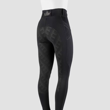 Een chiquere versie van onze bestverkochte paardrijleggings. De Momentum heeft een sportief functioneel ontwerp met chique details. Hetzelfde vertrouwde comfortabele gevoel en dezelfde strakke pasvorm als onze bestverkochte leggings met daarnaast : net die extra wow factor door de toevoeging van kristallen op de bies rond de zij (telefoon) zakken op het linkerdijbeen en op de achterkant van de tailleband. Het zitvlak met geprinte siliconen zorgt voor een goede grip in het zadel en natuurlijk is er genoeg ruimte voor je mobiele telefoon! Productspecificaties:< Chique pull up leggings met flatterend design en comfortabele pasvorm Accentbiesjes met kristalletjes en kristallen artwork op de dij en achterkant van de tailleband Zijvak met rits voor mobiele telefoon Licht mat siliconen zitvlak Materiaal:< 90% Polyester 10% Spandex gebreid