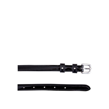 Elegante Lackleder-Sporenriemen mit zwei Lederschlaufen, besetzt mit Swarovski® Kristallen. Die Riemen sind 12 mm breit und 45 cm lang. VE 5 Paar.
