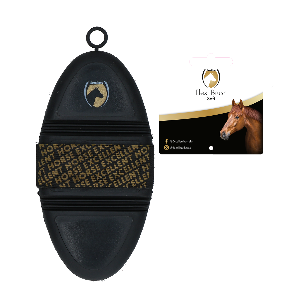 De Excellent Horse Flexi Brush Soft verwijdert stof en zand effectief. De zachte haren gaan lang mee en zorgen ervoor dat de vacht er gezond en glanzend uitziet. Door de flexibele bovenzijde ligt de borstel comfortabel in de hand en vormt deze zich eenvoudig naar het lichaam van het paard.