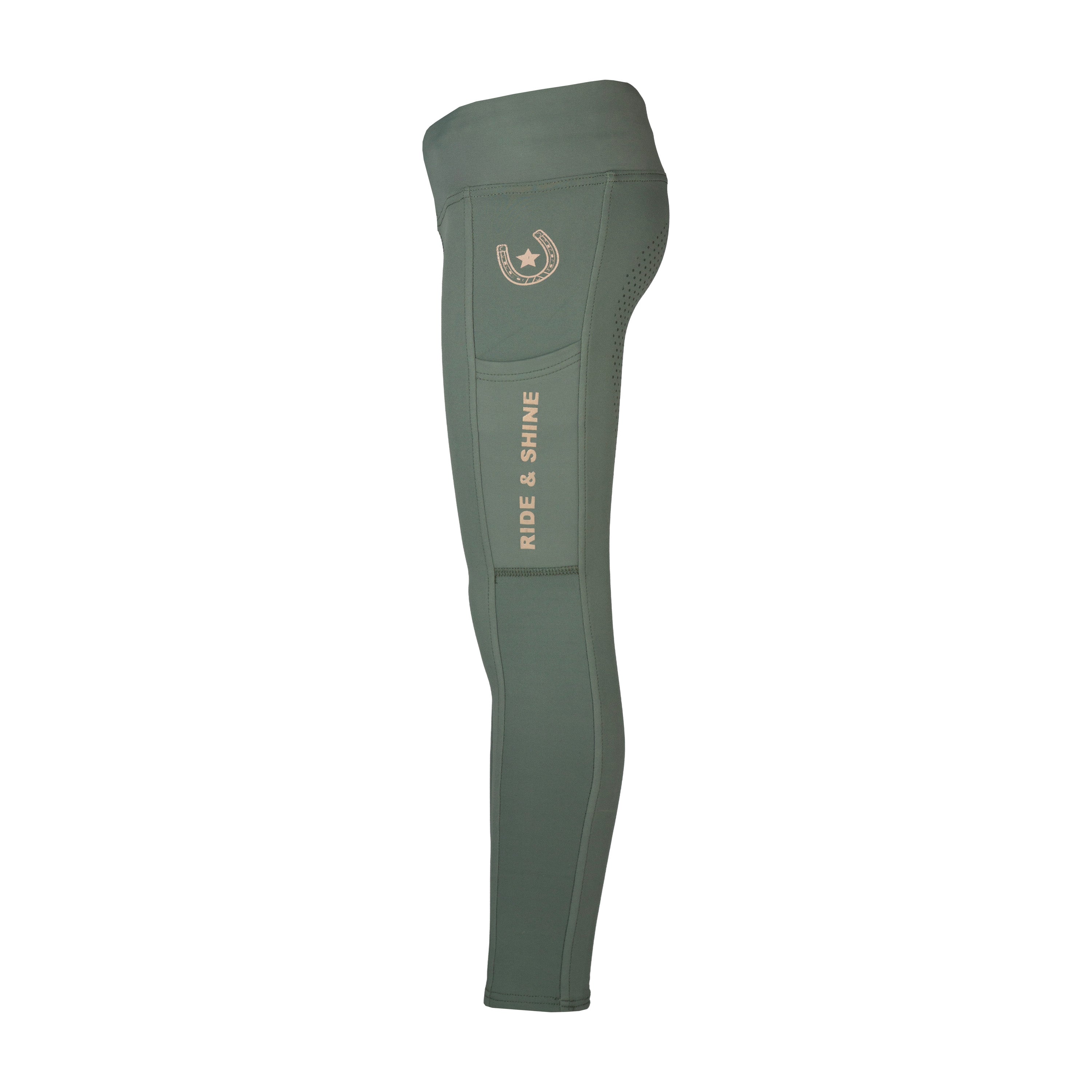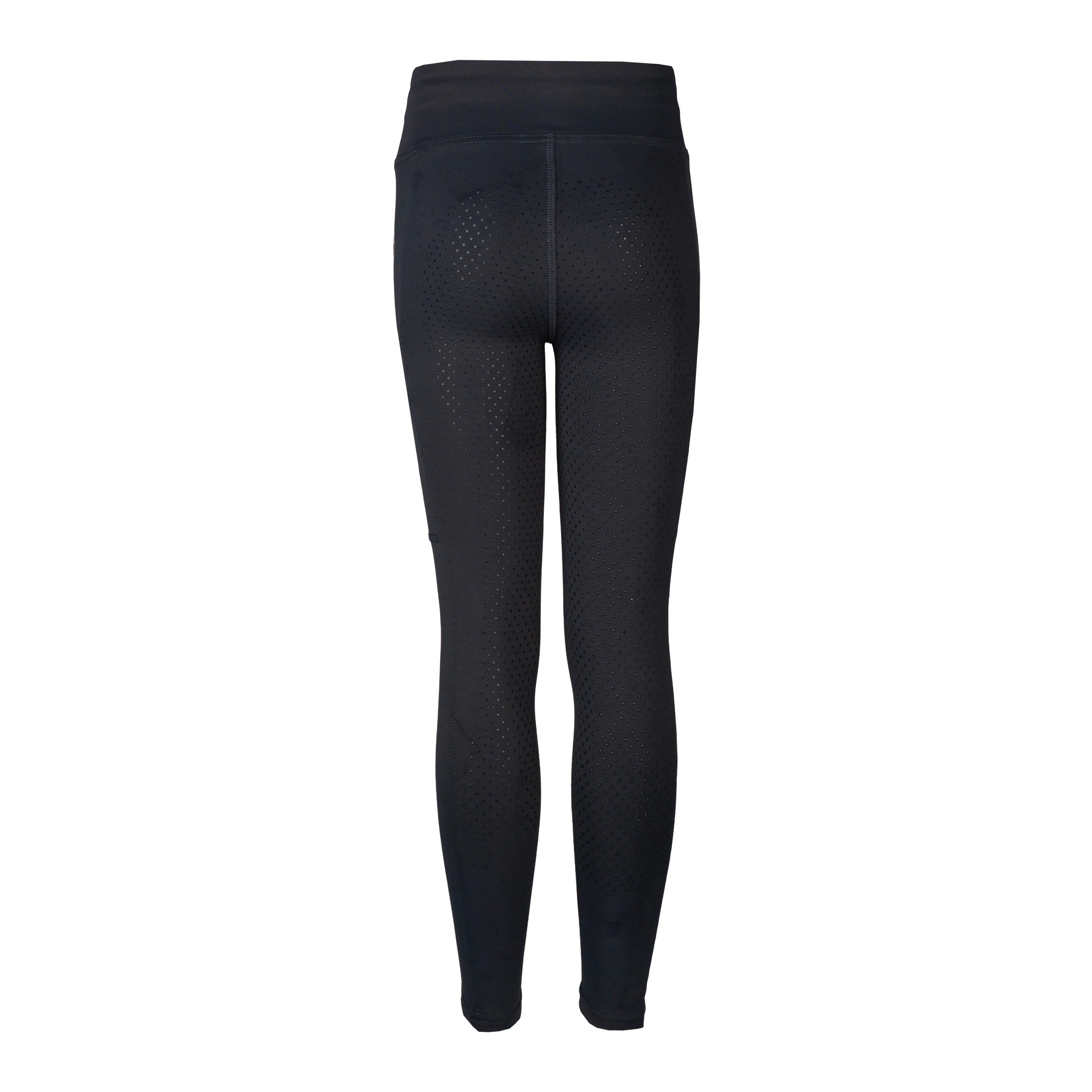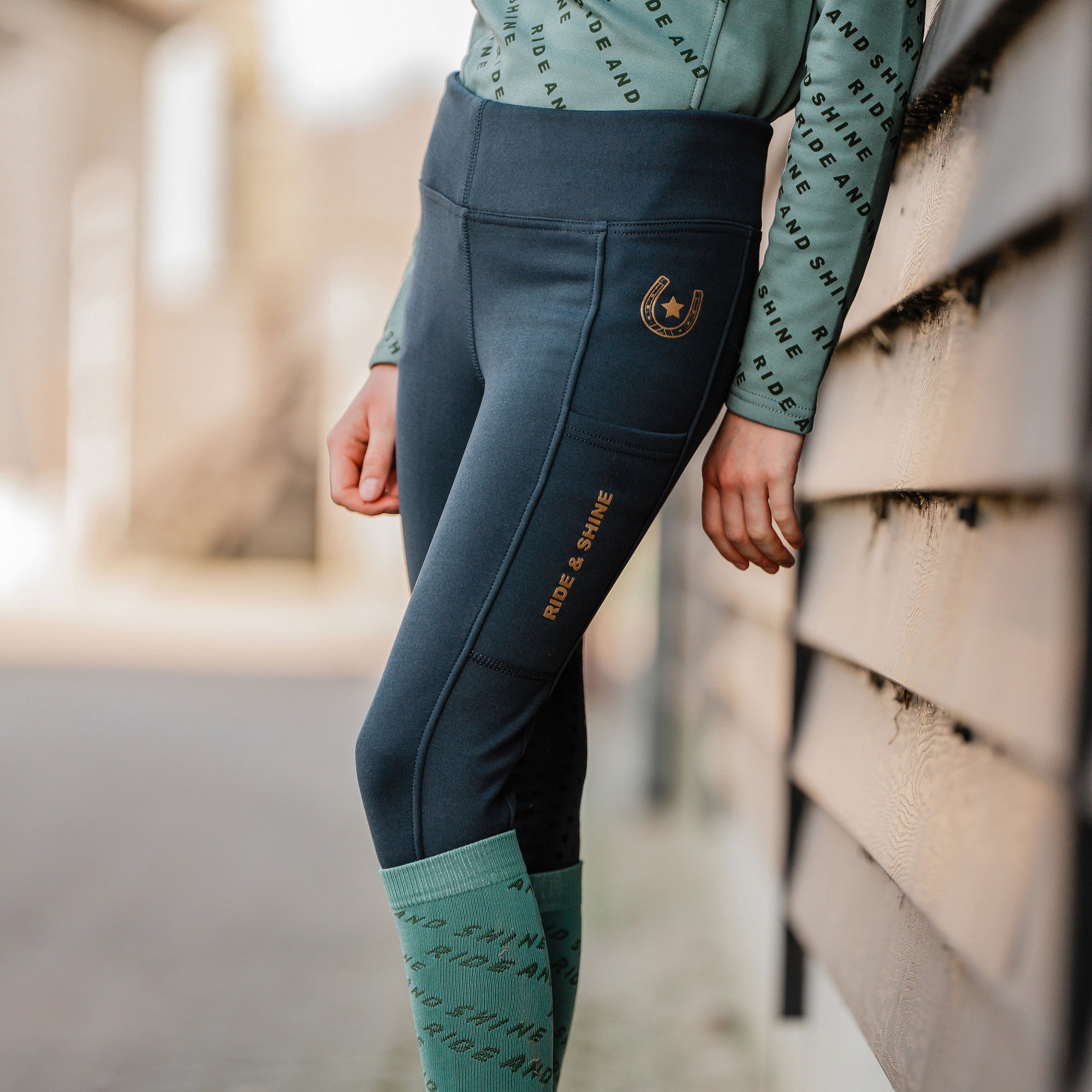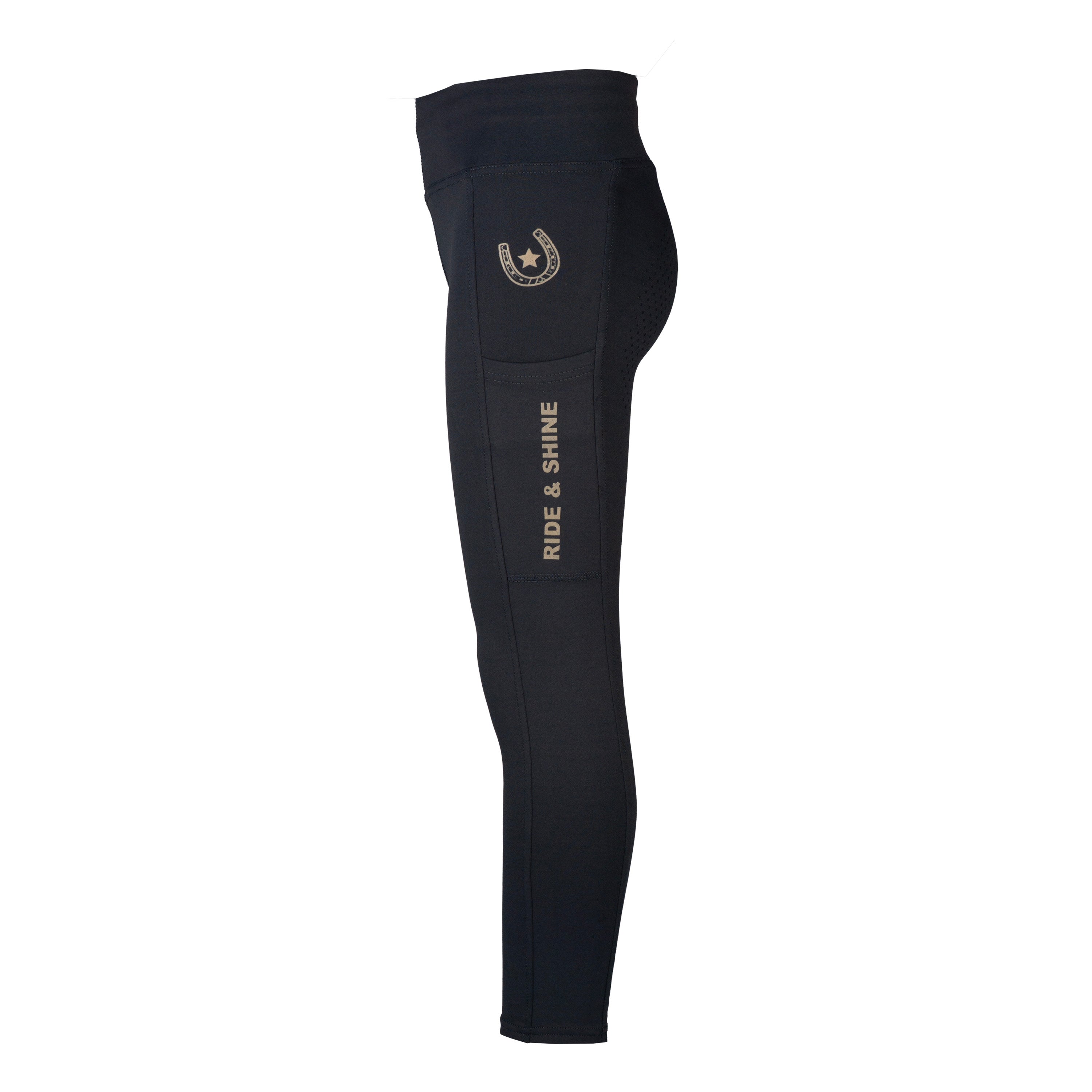 Rijlegging van sneldrogende en ademende stof. De binnenkant van de legging is geborsteld voor extra warmte en comfort. De broek heeft twee diepe zijzakken voor je mobiel verstelbare broekband voor een goede pasvorm en een volledig siliconen zitvlak voor extra grip. De champagne gouden details geven de broek een stijlvolle uitstraling. Productspecificaties: < Rijlegging van sneldrogende en ademende stof Geborstelde binnenkant voor extra warmte Verstelbare tailleband aan de binnenkan Twee zijzakken diep genoeg voor mobiele telefoon Champagne gouden afwerking en accenten Volledig zitvlak met siliconenprint Materiaal: < 90% polyester 10% elastaan (binnenkant geborsteld)