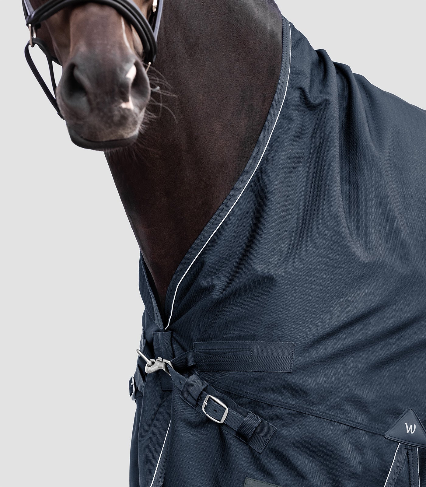 La couverture d'extérieur Scandic High Neck a un col plus haut, ce qui évite les frottements au niveau du garrot et de la crinière.