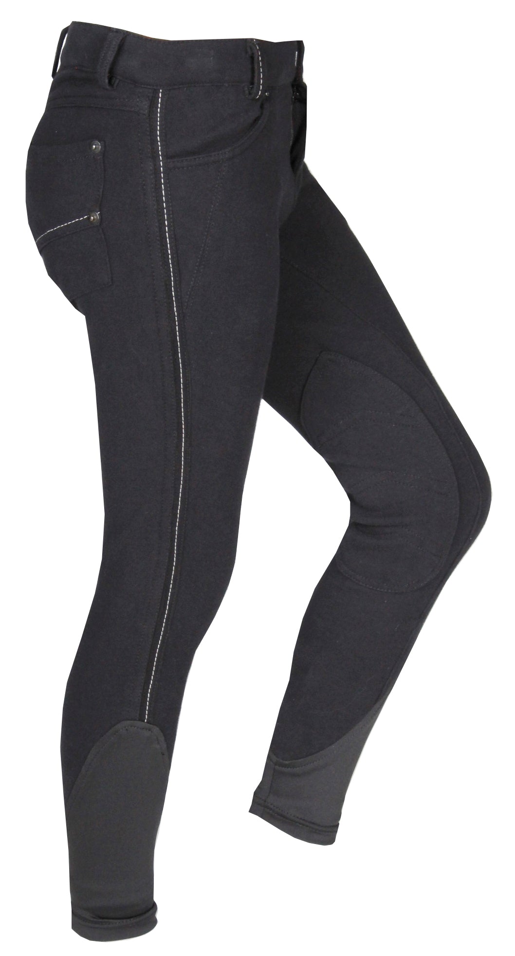 Pantalon d'équitation garçon tendance avec renforts genoux en tissu 100% coton. Ce pantalon est doté d'une poche style jean et de surpiqûres contrastées. Caractéristiques : Pantalon d'équitation garçon, poche style jean, surpiqûres contrastées, renforts genoux en tissu. Composition : 92 % coton, 8 % élasthanne (tricot).