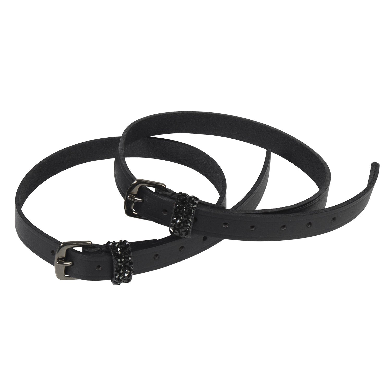 Leren sporenriempjes, stijlvol afgewerkt met glinsterende kristallen.