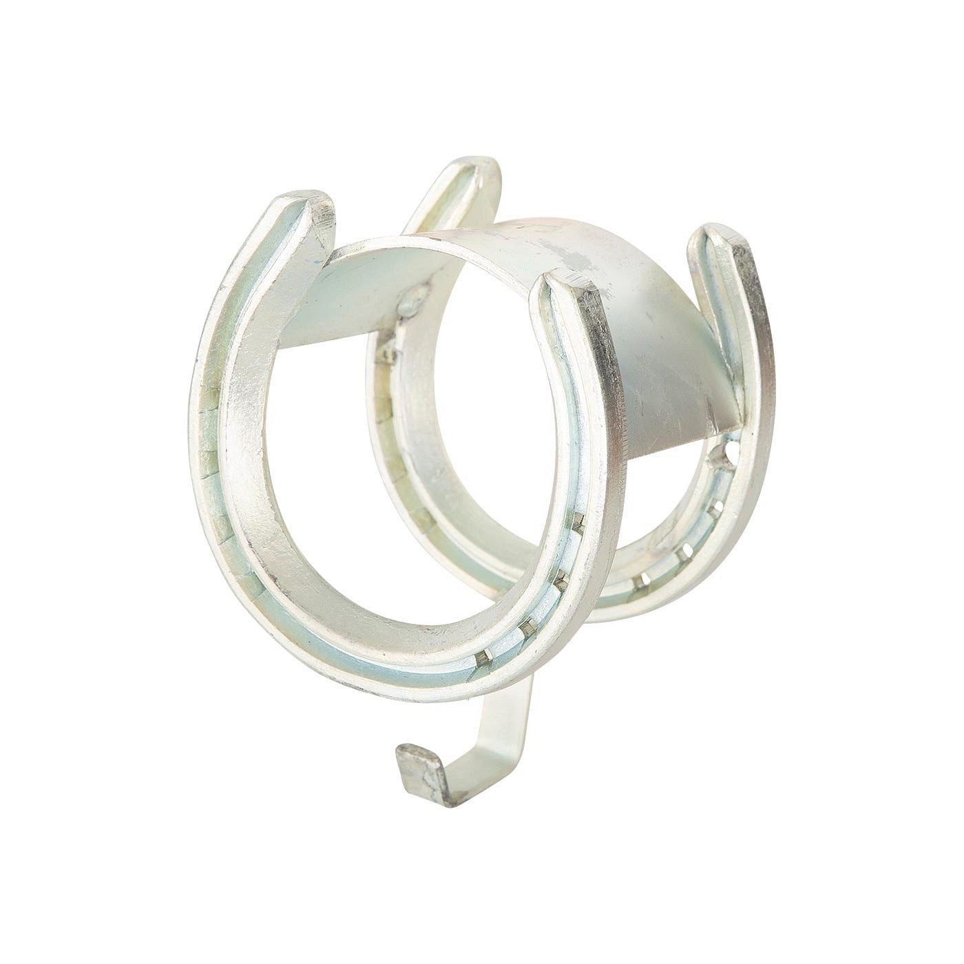Ce porte-bride métallique en forme de fer à cheval, disponible avec un revêtement brillant ou en version zinguée, mérite une belle place dans la sellerie ou sur le mur de votre magasin.