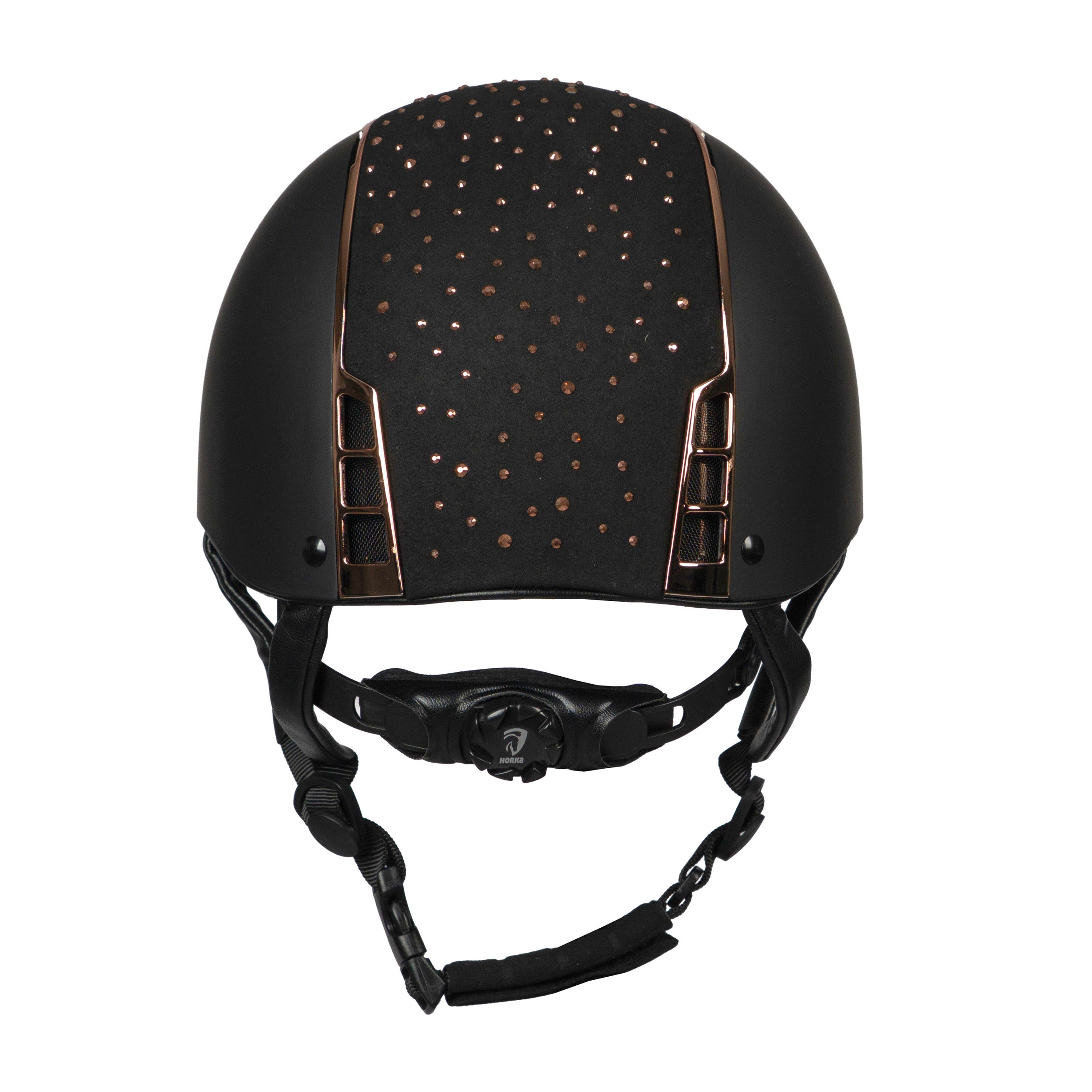 Lichtgewicht veiligheidshelm. De helm is EN1384:2023 gecertificeerd. Productspecificaties: Goed geventileerd 4 punts veiligheidsgordel met imitatie leder look Verstelbaar maatsysteem d.m.v. draaiknop Uitneembare en wasbare binnenvoering Maten: XS/S = 51 55 cm S/M = 55 57 cm M/L = 57 59 cm L/XL = 59 61 cm