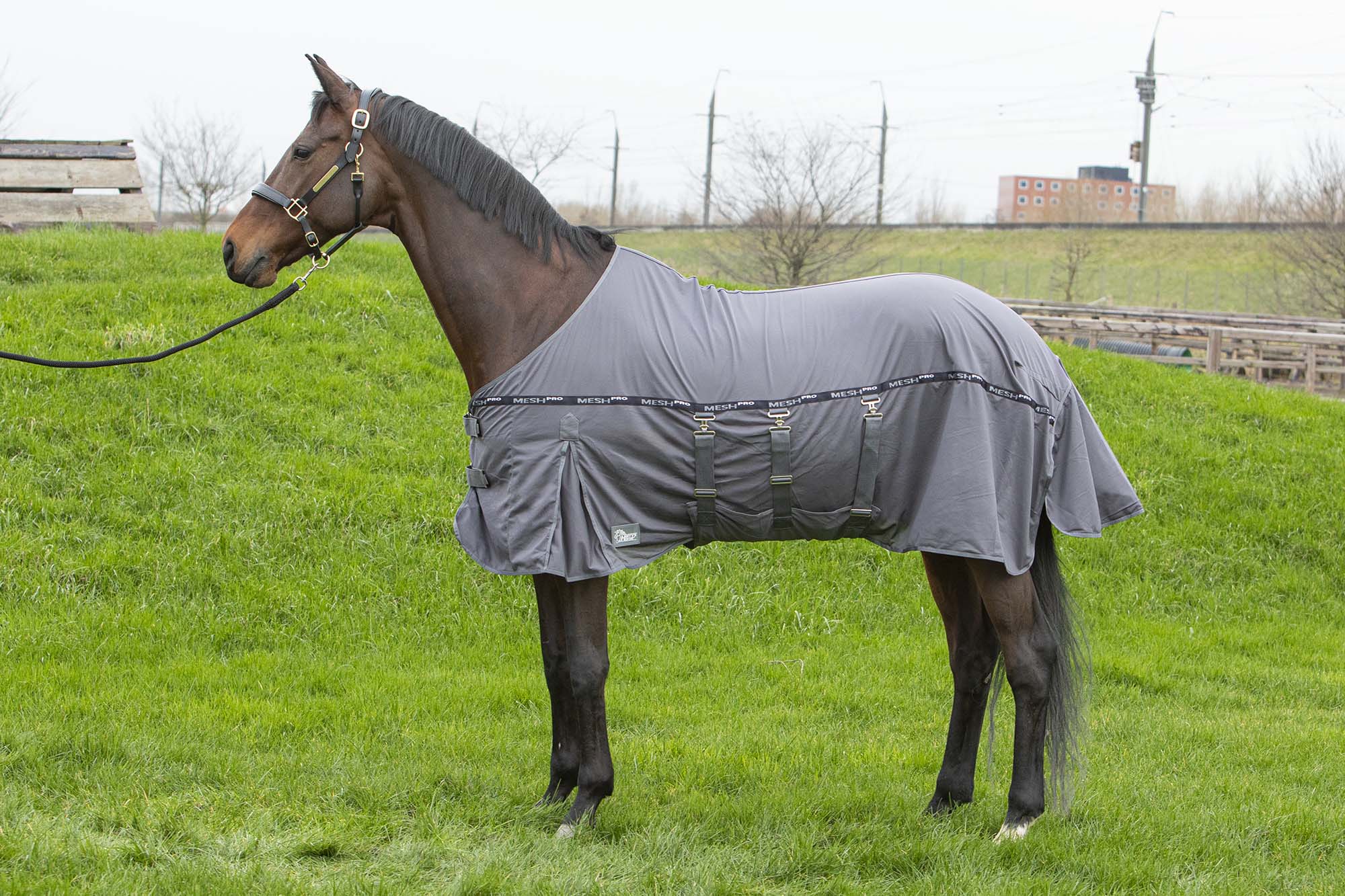 Mesh Pro deken te gebruiken als vliegendeken of cooler deken. Voorzien van een dubbele voorsluiting, brede buikflap met 3 sluitingen, extra brede staartflap, een staartlus en de borst is glad polyester gevoerd.