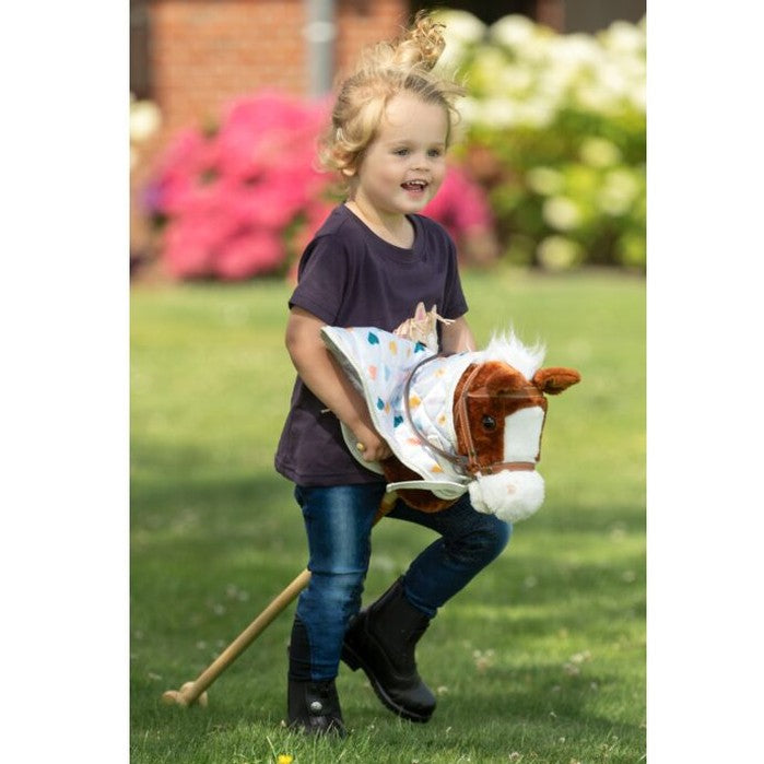- Speelgoeddeken om aan de hals van het stokpaard te bevestigen
