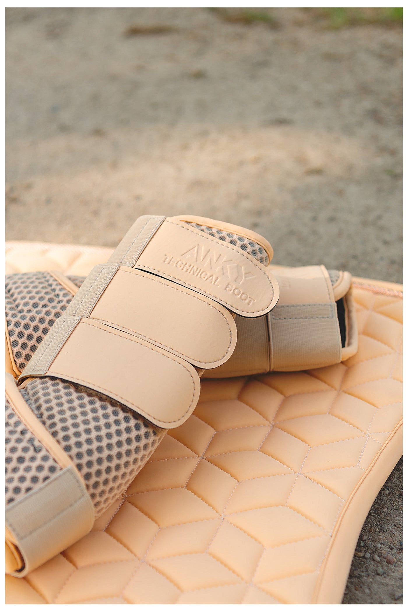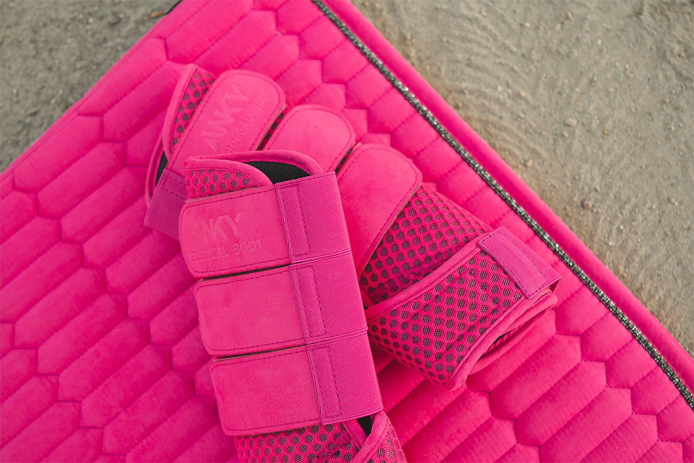 - Geperforeerde neopreen voering houdt het been van het paard koel en droog