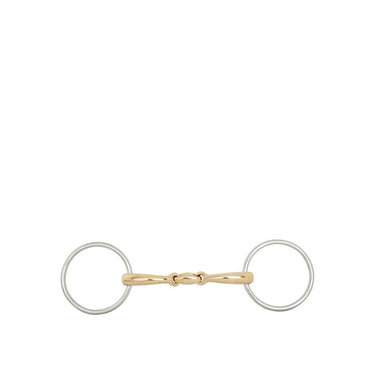 Deze kwalitatief hoogwaardige dubbel gebroken watertrens is vervaardigd van massief Cuprigan met roestvrijstalen ringen. Cuprigan is een legering bestaande uit 89% koper, 7% aluminium, 3% ijzer en 1% zink Het oxidatieproces van het materiaal geeft een prettige geur en smaak. De anatomische vormgeving volgt de vorm van de paardenmond, waardoor een zachte en gelijkmatige drukverdeling ontstaat. Door de combinatie van de vormgeving en de unieke samenstelling van Cuprigan, wordt het kauwproces en de speekselvorming gestimuleerd, waardoor er een fijne verbinding kan ontstaan met de gevoelige paardenmond. Het bit heeft een zachte inwerking op de mond. Het mondstuk heeft een dikte van 14 mm en de bitringen hebben een diameter van 70 mm. ??