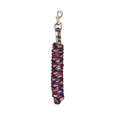 Extra lange, gevlochten halstertouw met goudkleurige musketon. Lengte: 300cm.