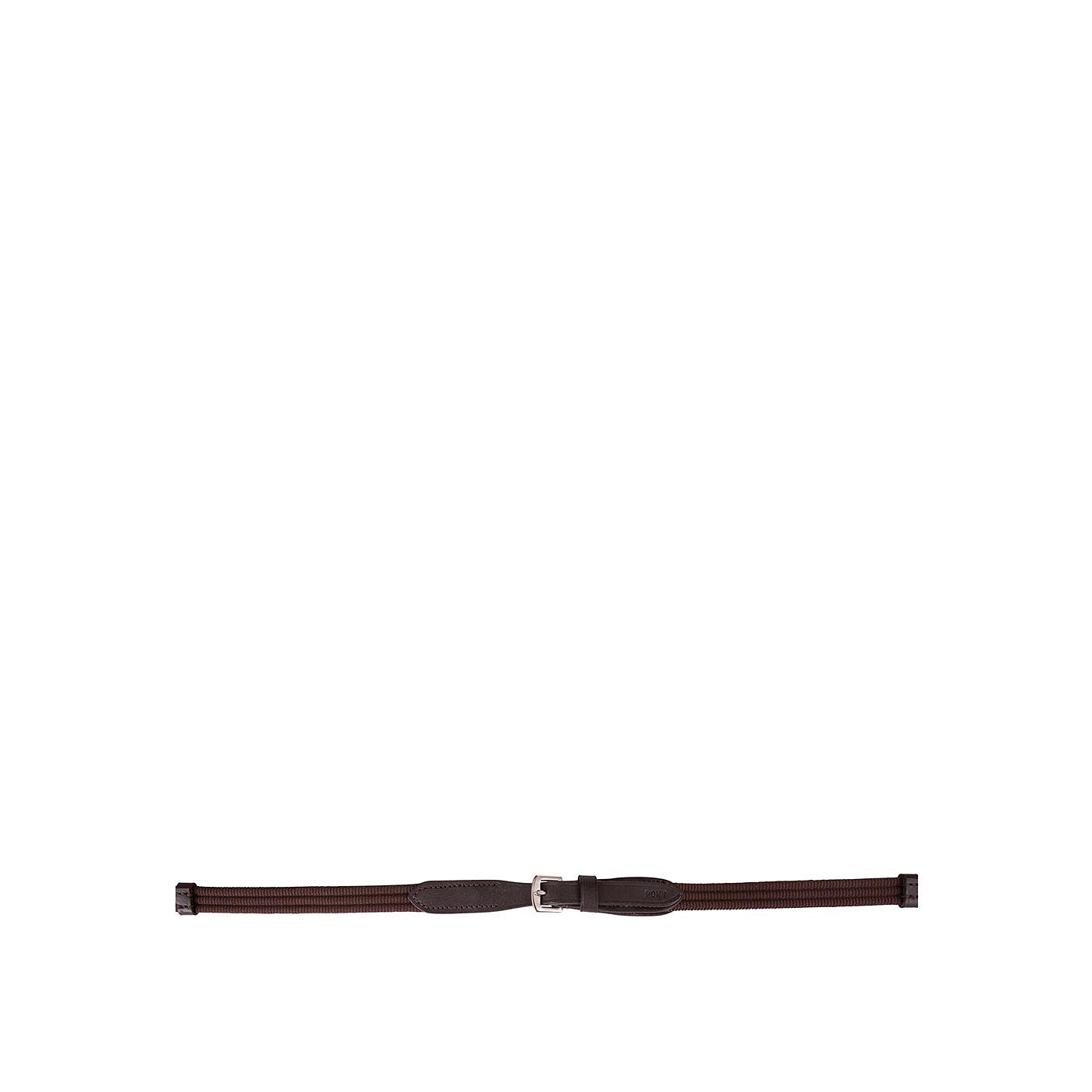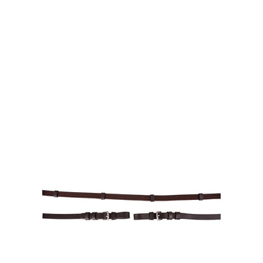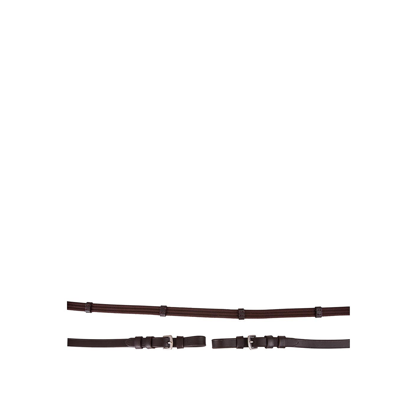 Linnen teugel met lederen hand- en teugelstops, 19 mm breed. De lederen uiteinden met roestvrijstalen gespsluitingen zijn 16 mm breed.